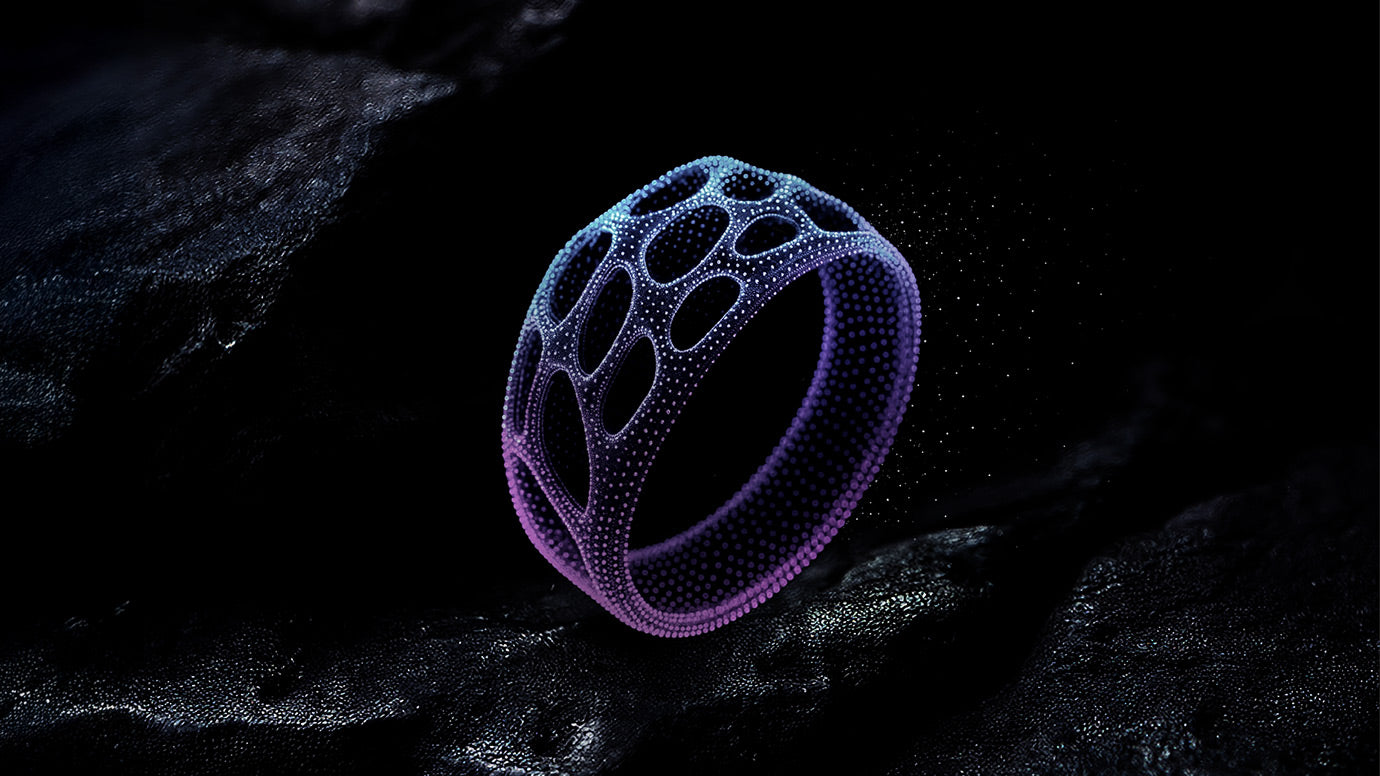 Jewellery as chapters of Earth’s history — patterns explored with AI, transformed into precious metal, and crafted to wear.
